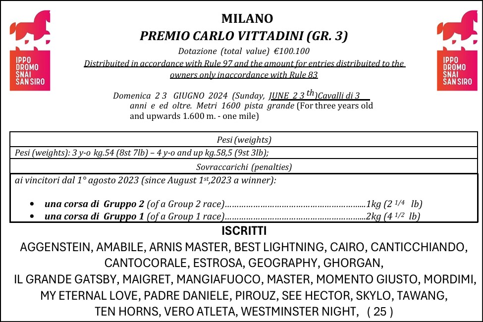 Grandi campioni sulla pista di San Siro, e come spesso accade sarà ancora Italia contro Germania…Corse di GR3 che meriterebbero qualcosa in più…ma con queste premesse il galoppo italiano può scalare posizioni!