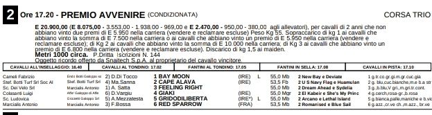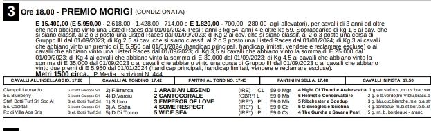 - Cape Alava, percorso molto simile a Bay Moon, ha vinto la sua seconda gara a Firenze in una prova con la curva, può ambire ad un piazzamento di prestigio.
