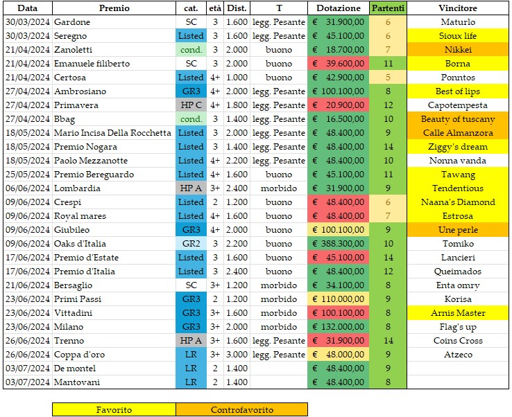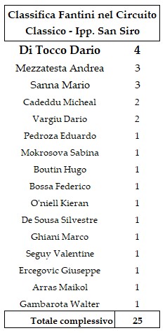 - Premio Hobby Sport Corsico, H per cavalli di 3 anni +, Dotazione €13.200, Distanza 1.000 metri dritta.