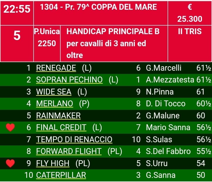 Per il “Criterium” segnaliamo Gridodilibertà che ha corso sempre molto bene ma ha raccolto meno rispetto alle prestazioni effettuate, Cape Alava e Moraia a seguire.