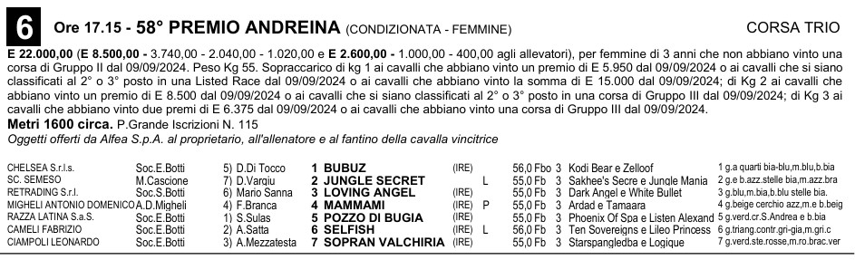 Condizionata per femmine di 3 anni sulla distanza dei 1.600 metri che rappresenta la prova generale del Premio Pisa.