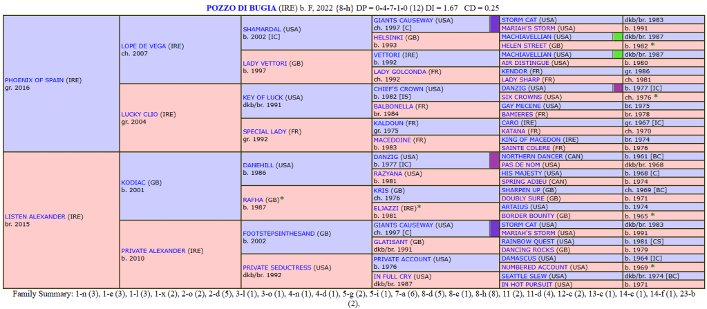 Il padre è Kodi bear (Kodiac*/Hawattef), vincitore a 2 e 3 anni, “Celebration Mile” (GR2, 1.600 metri), “Sovereign Stakes” (GR3 1.600 metri), ; la madre Zelloof (Kheleyef/Belle Genius) vincitrice una sola volta in carriera. Bubuz è outcrossing nelle prime 3 generazioni. In Totale ha 54 antenati diversi su un totale di 62 che compongono le 5 generazioni analizzate.