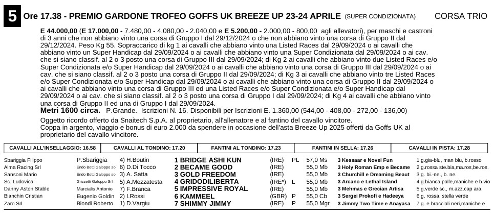 Il link per rivedere la corsa: Corsa 5 di Sabato 29 Marzo 2025 alle 17:38 a Milano – SNAI Ippica