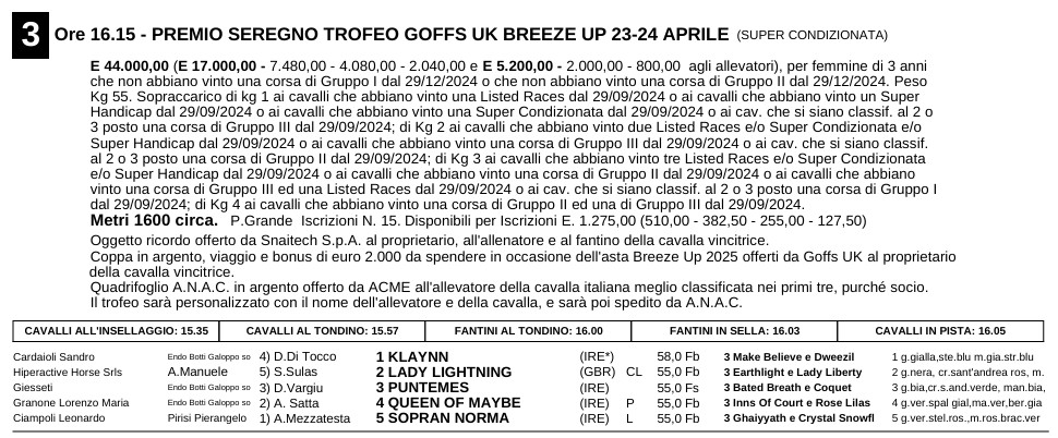 Il link per rivedere la corsa: Corsa 3 di Sabato 29 marzo 2025 alle 16:15 a Milano – SNAI Ippica