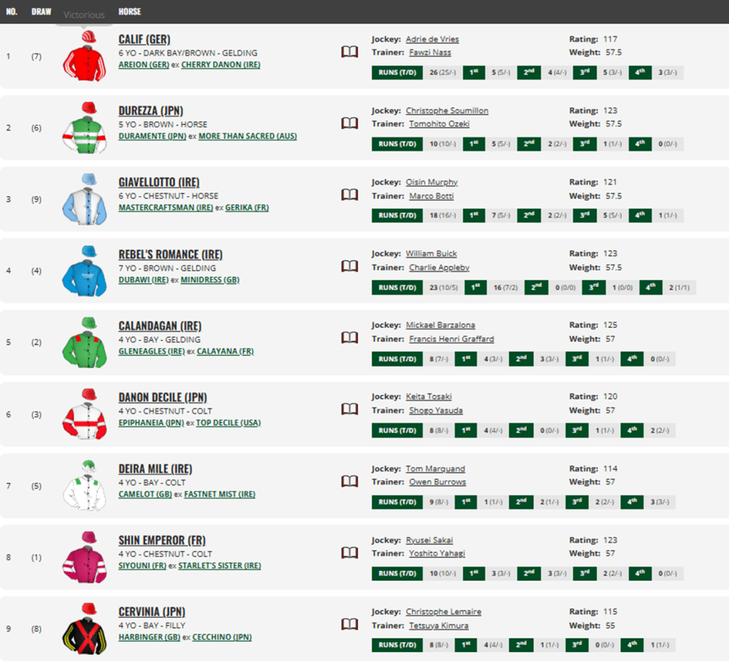 Gruppo 1 Per cavalli di 4YO+ ERBA USD 6,000,000 Distanza 2410 metri Partenti 9