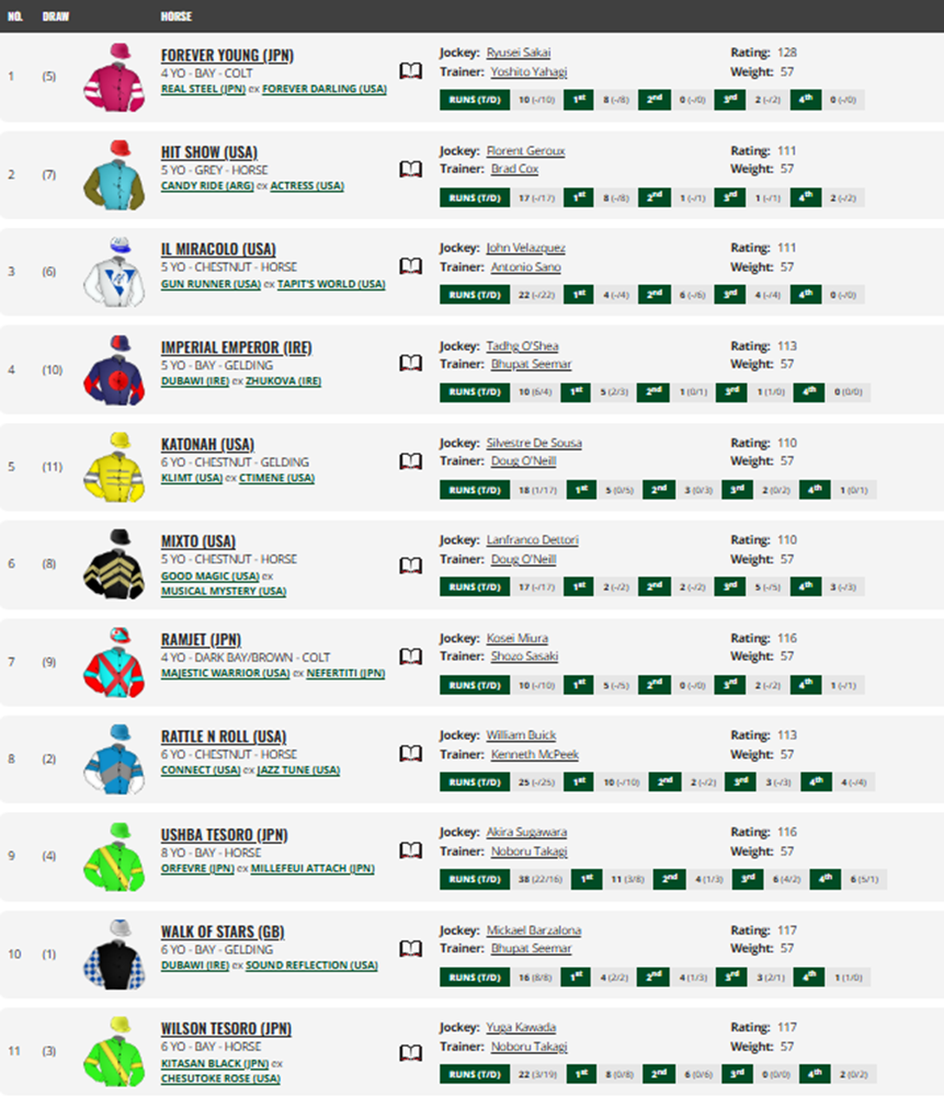 Gruppo 1 Per cavalli di 3YO+ ERBA USD 1,500,000 Distanza 1.200 metri Partenti 11