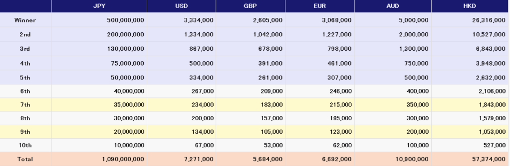 I Premi in tutte le valute più importanti che verranno distribuiti: