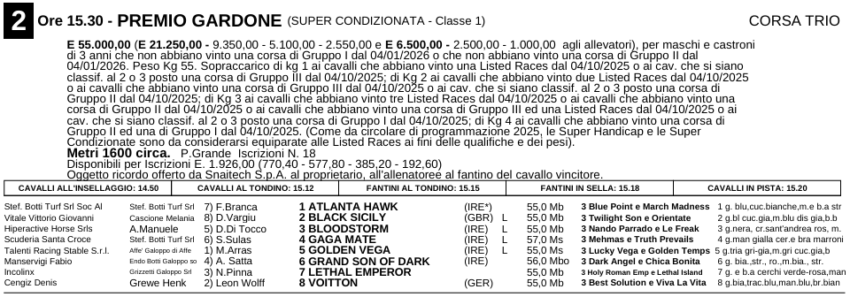 I primi quattro del Premio Gardone, saranno sicuramente iscritti al Premio Parioli che per la prima volta si correrà a Milano, un edizione inedita che vedrà sicuramente l’arrivo di molti stranieri.