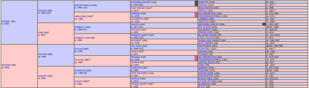 S Frankel (2008 – GB) Galileo, Sadler’s wells, Northern Dancer