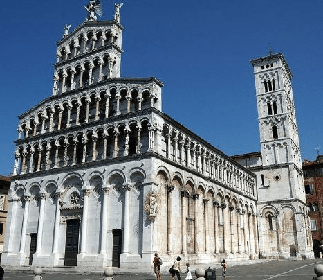 Duomo di Lucca, secondo la tradizione, il duomo fu fondato da San Frediano nel VI secolo, poi riedificato da Anselmo da Baggio, vescovo della città, nel 1060 ed infine modificato tra il XII e il XIV secolo.