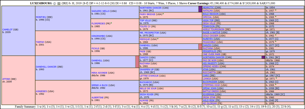 | 31/05 | Inghilterra | Epsom | Coronation Cup | €520.000 | 4+ | 2.414 | Luxembourg | 2019 | mas | Camelot | 8-f | Hamish | Feed and Flame | Emily Upjohn (f) | |