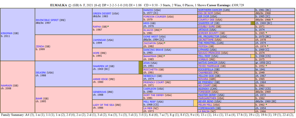 | 21/06 | Inghilterra | Ascot | Commonwealth Cup | £650.000 | 3 | 1.200 | Inisherin | 2021 | mas | f | Shamardal | 26 | Lake Forest | Jasour | Kind of Blue |