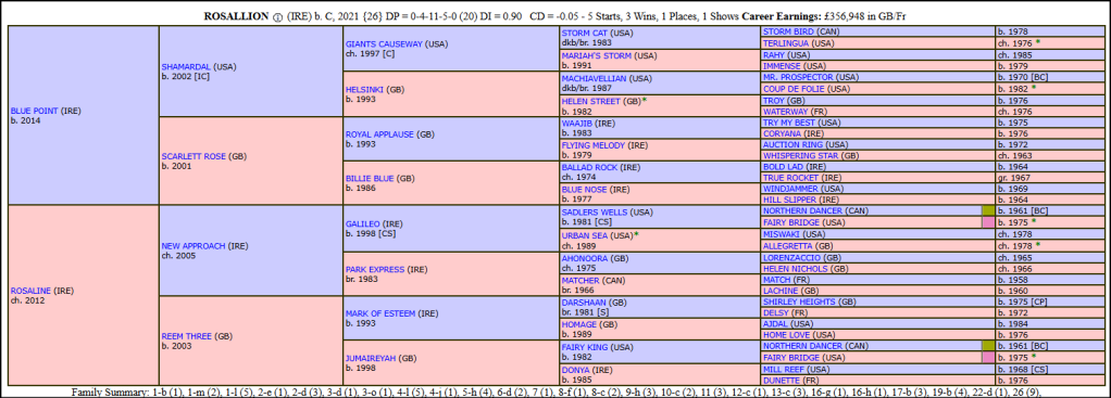 | 04/05 | Inghilterra | Newmarket | 2.000 Guineas | £500.000 | 3 | 1.609 | Notable Speech | 2021 | mas | Dubawi | 10-c | Rosallion | Hateem | Ghostwriter | |