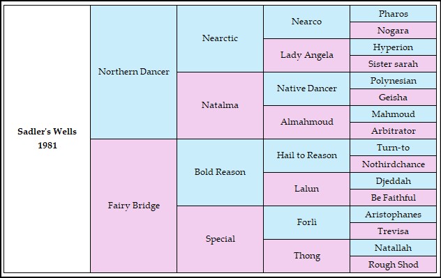 Sadler’s Wells – USA, b. (11 Aprile 1981 – 26 Aprile 2011 all’età di 30 anni per cause naturali) famiglia 5-h [DP 42 DI 2.82 CD 0.76]